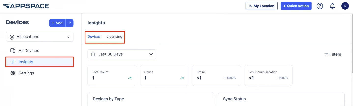 This article explains how to access and use the Device Insights dashboard, including the Devices and Licensing tabs.