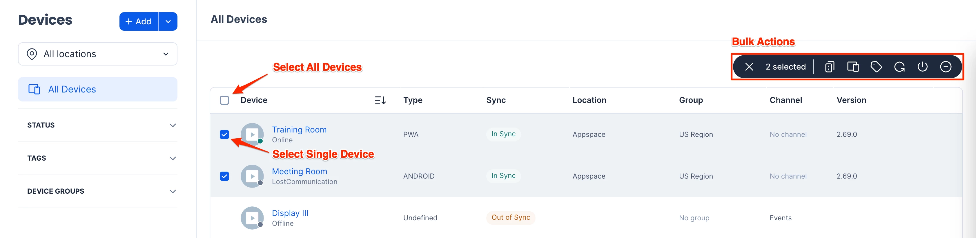 After setting up devices in your environment, monitoring, managing, and updating them becomes a top priority. Appspace simplifies these tasks with its Device Tasks feature, offering a centralized method for executing actions across your devices.