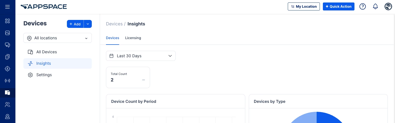Users can access this information by navigating to ☰ Appspace menu > Devices > Insights.