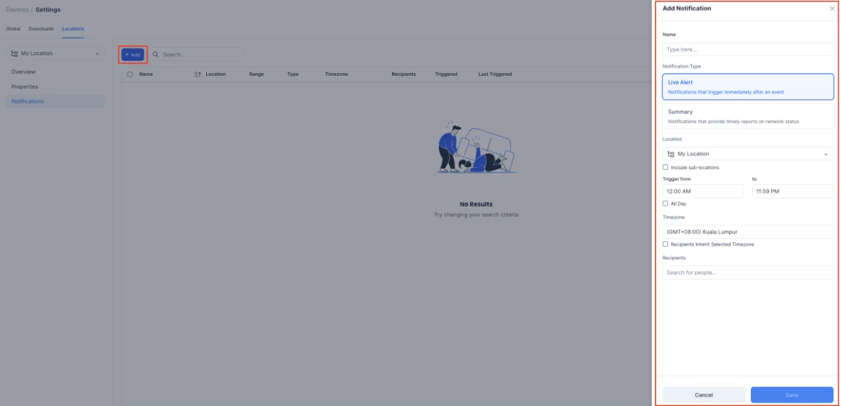- Recipients: Add the desired recipients. Once all details are entered, click Save.