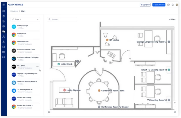 - Visual Network Control: Manage your entire digital signage network with interactive maps.