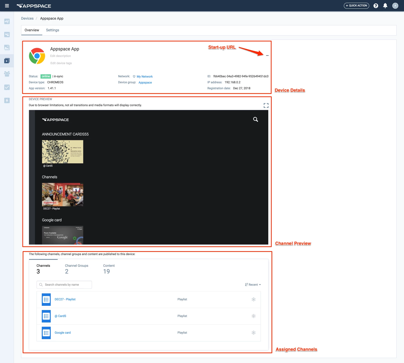 Apart from device details, this page also displays a channel preview, which you can browse.