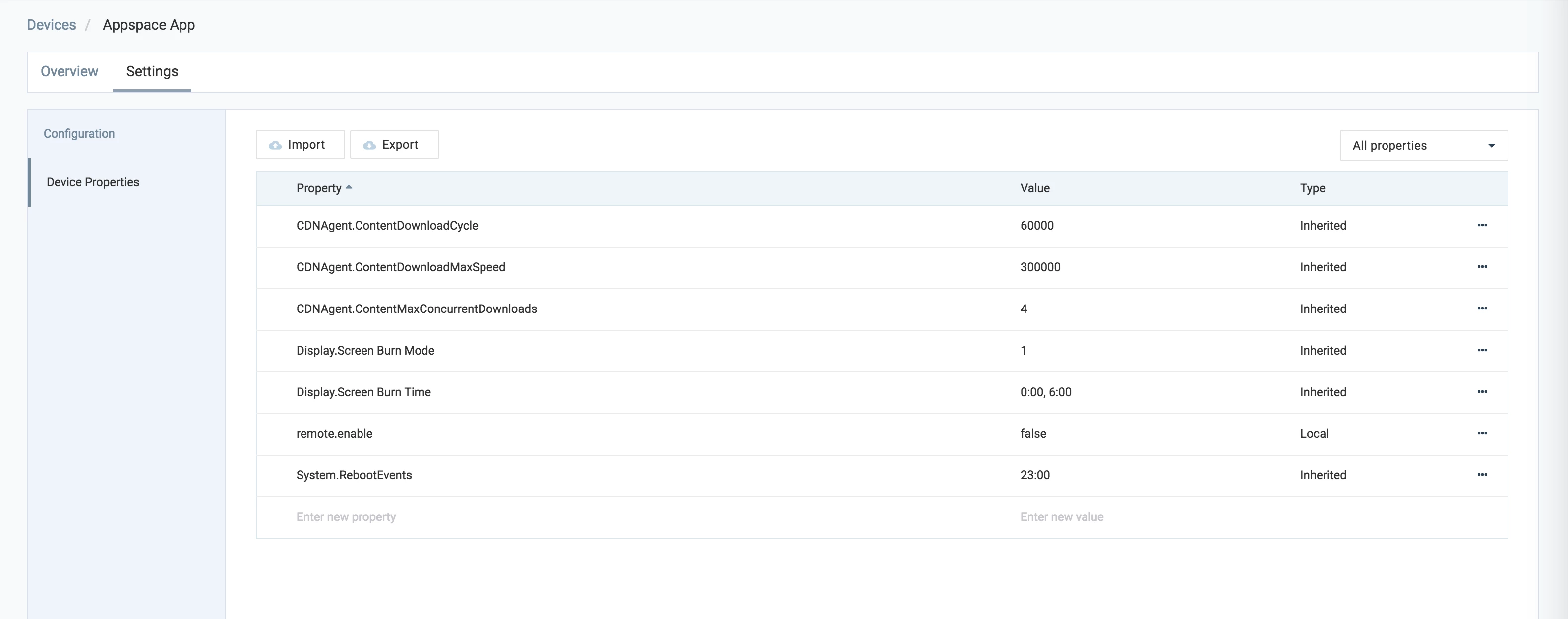 The Device Properties section allows non-visual or custom settings to be configured on to your device using the various device properties we have.
