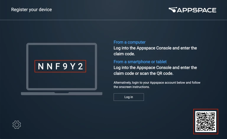 Prior to registration, your device must be configured with the Appspace App for devices, ideal for displaying digital signage, ,touch-screen kiosks, enterprise TV live streams, and room scheduling systems.