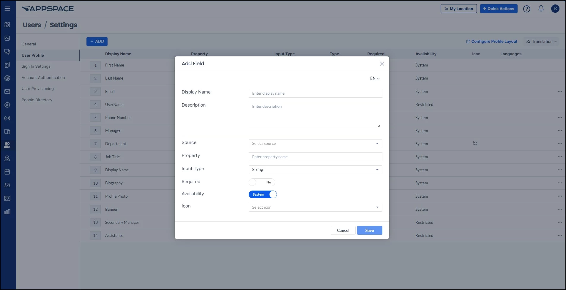 Previously, profile fields were limited to text and number input types, which restricted formatting, filtering, and the ability to ensure consistency across your directory. With this enhancement, administrators can now create fields with structured input types, configure how profile information is displayed, and give employees a more complete picture of their colleagues.