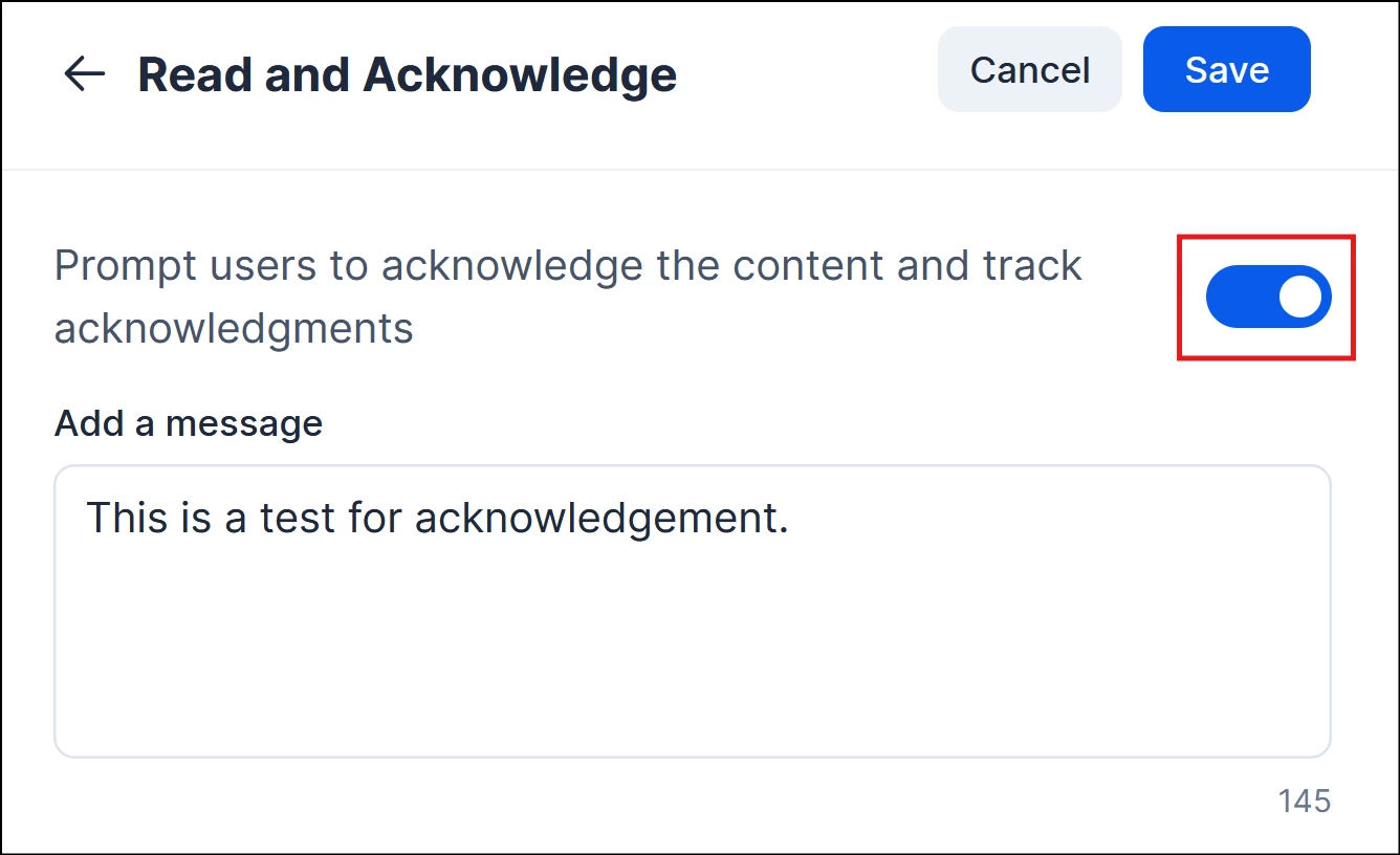 - Enable the toggle to require acknowledgement from all targeted users.