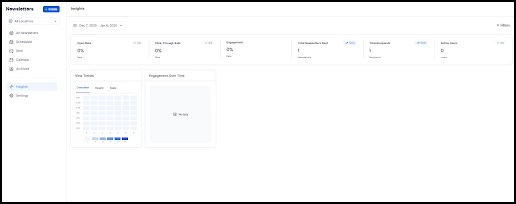 To view performance data across all newsletters, navigate to Newsletters > Insights. The following data points are available for analysis: