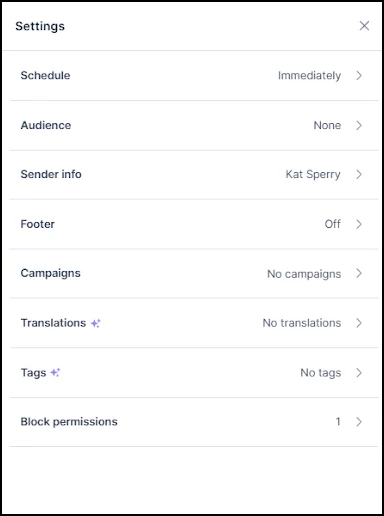In the Newsletter settings, you can manage and customize various details to optimize your communication. Click the Settings gear icon to configure the following options: