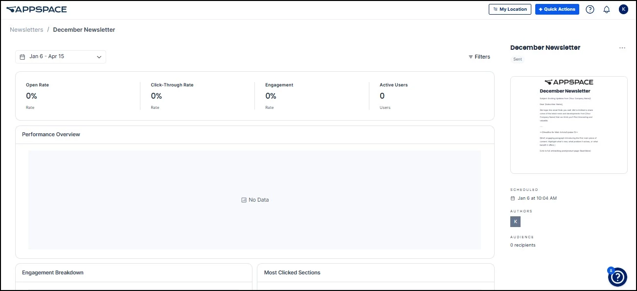 - Filtering: Refine the list by Author, Audience, Date, or Campaign to quickly locate specific Newsletters.
