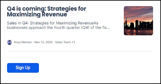 Insert Call-to-Action (CTA) buttons to facilitate direct interaction with external links within the newsletter email. This feature allows you to embed functional buttons — such as a "Sign Up" link directing users to a registration sheet — to drive employee engagement with specific resources or tasks.