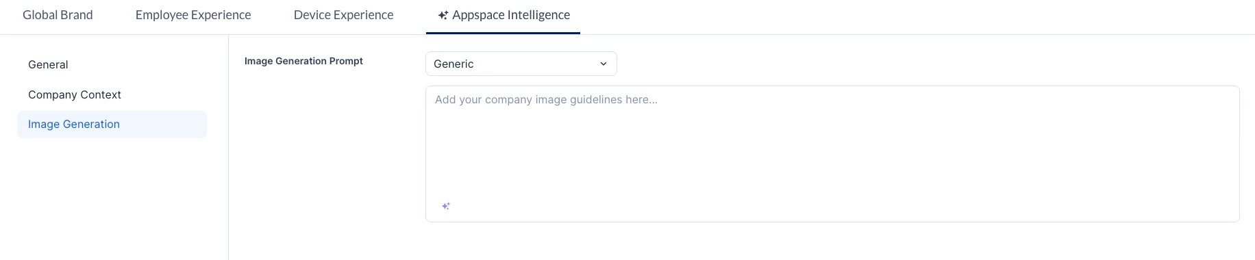 - Company Background – Provide a description of your organization’s history, goals, and culture to help the AI generate more relevant content. If needed, use Appspace Intelligence to help you write it.