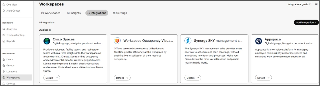 - Select Integrations and look for the Appspace option under Available Integrations.