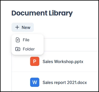 To upload files or create new folders, click the +New button above the file overview and select File or Folder.