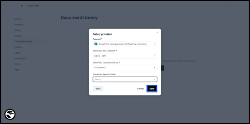 Click Save to create the SharePoint Document Library within the community.