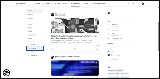 - Navigating to community settings to begin setup