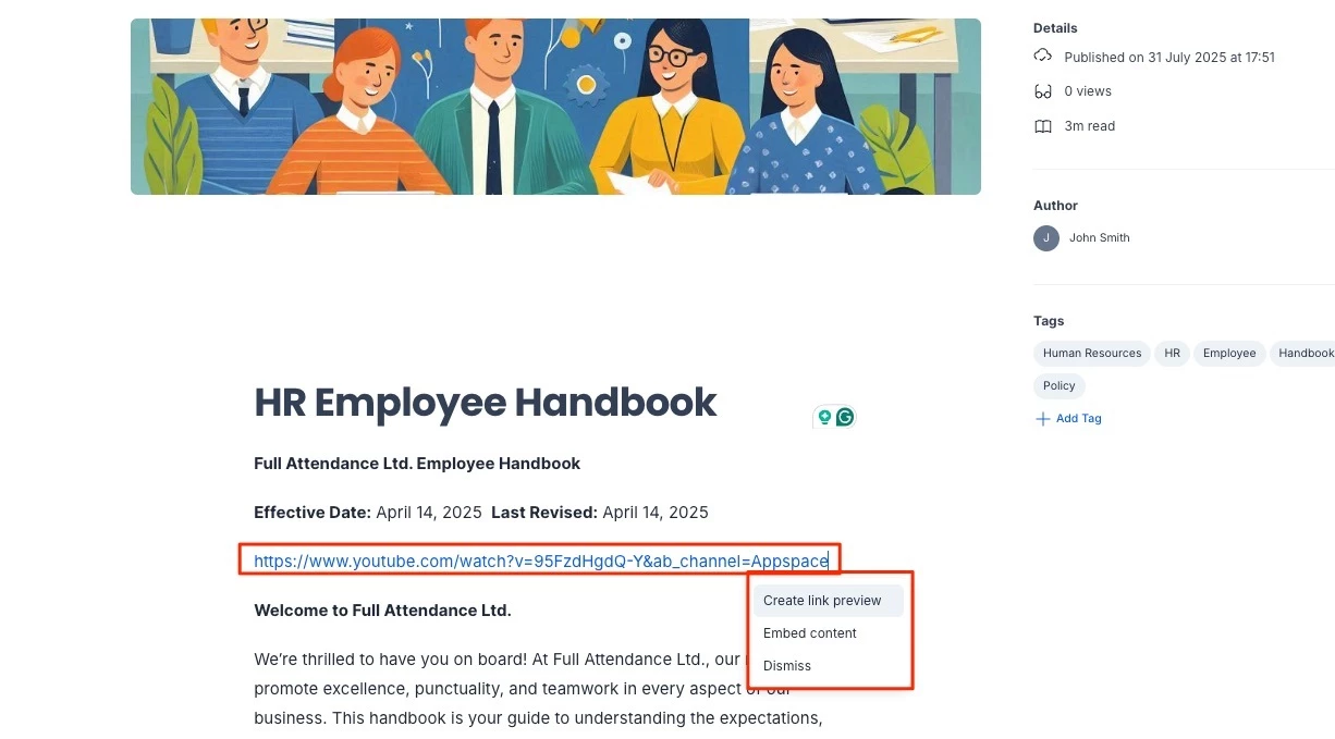 - Create link preview – Shows a small thumbnail and the link within the article.