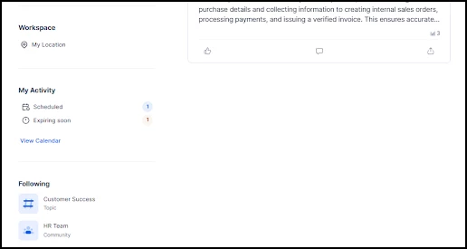How to handle it: Click your profile button at the top right corner of the Employee View, then go to Profile → My Activity. You'll see counts for your Scheduled and Expiring soon content. Click View Calendar to see your personal content timeline.
