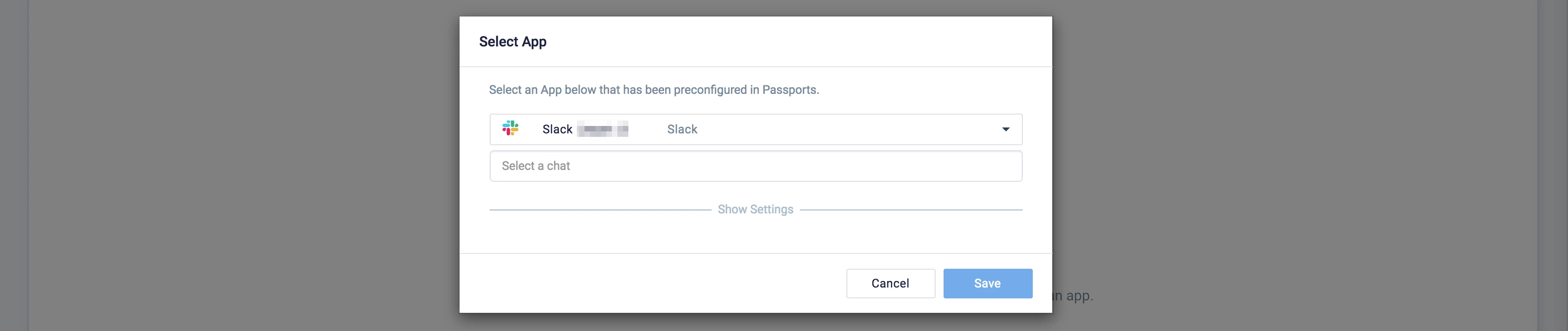 - Click the Publish to an App button, and select the enterprise messaging app integration account and the chat room you wish to publish to.