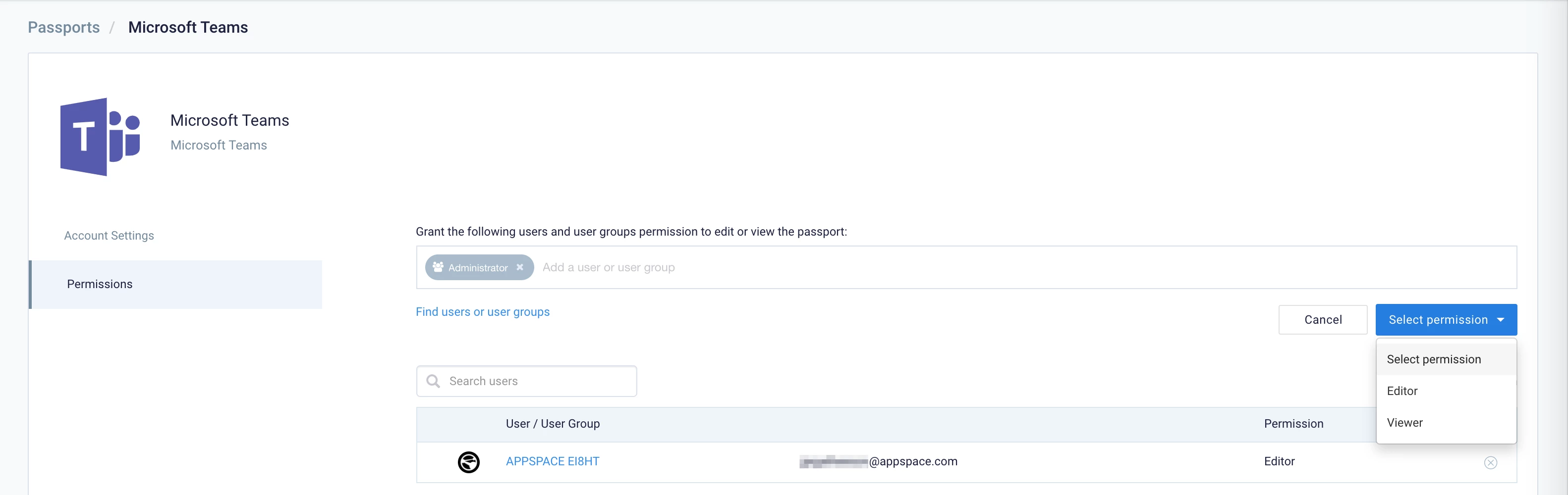 - We request granular access to your organization. Appspace does not request broad permissions to your organization. The integration only has the permissions required to perform its operation, which is to post content from the Appspace console into the Microsoft Teams spaces/channels/chats.