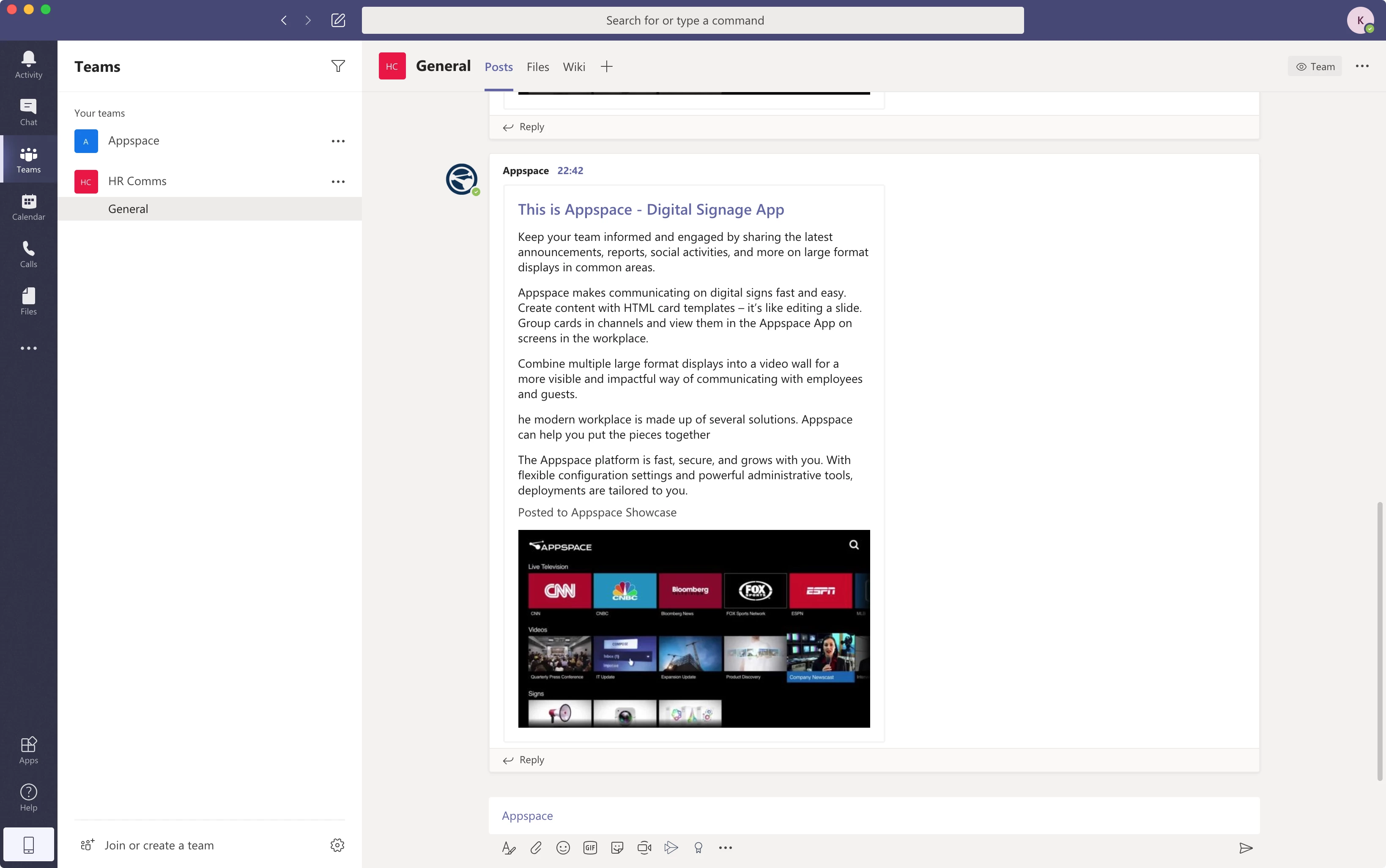 Read more about the integration architecture and how it all connects here in the Appspace Integration with Enterprise Messaging Apps