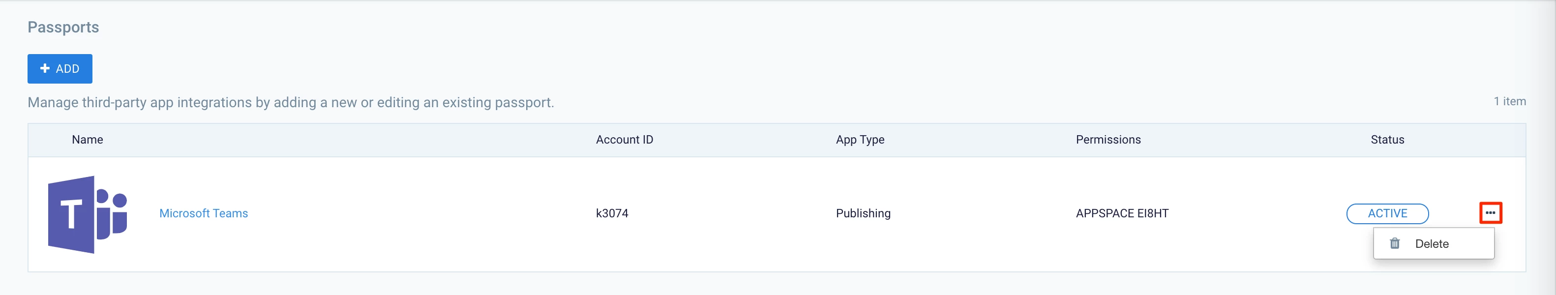 - Click the ellipsis for the desired Microsoft Teams integration, and click Delete.