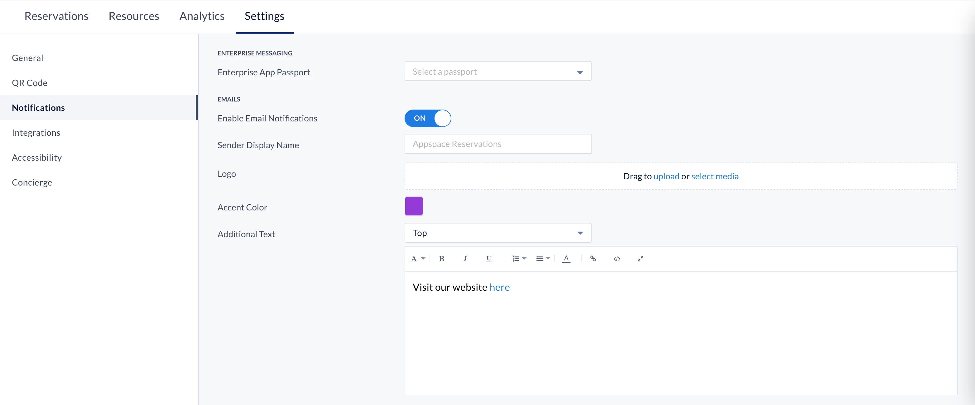 This configuration allows Reservation Notifications to be sent to Microsoft Teams, similar to how users receive their reservation email notifications. The Appspace bot is able to send notifications to the respective reservation organizers or attendees for the following events: