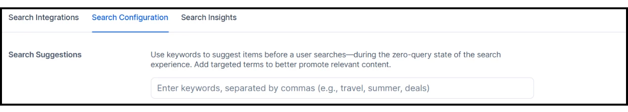 - In the Search Suggestions section, add the keywords you want to highlight by typing them in and pressing Enter after each term.