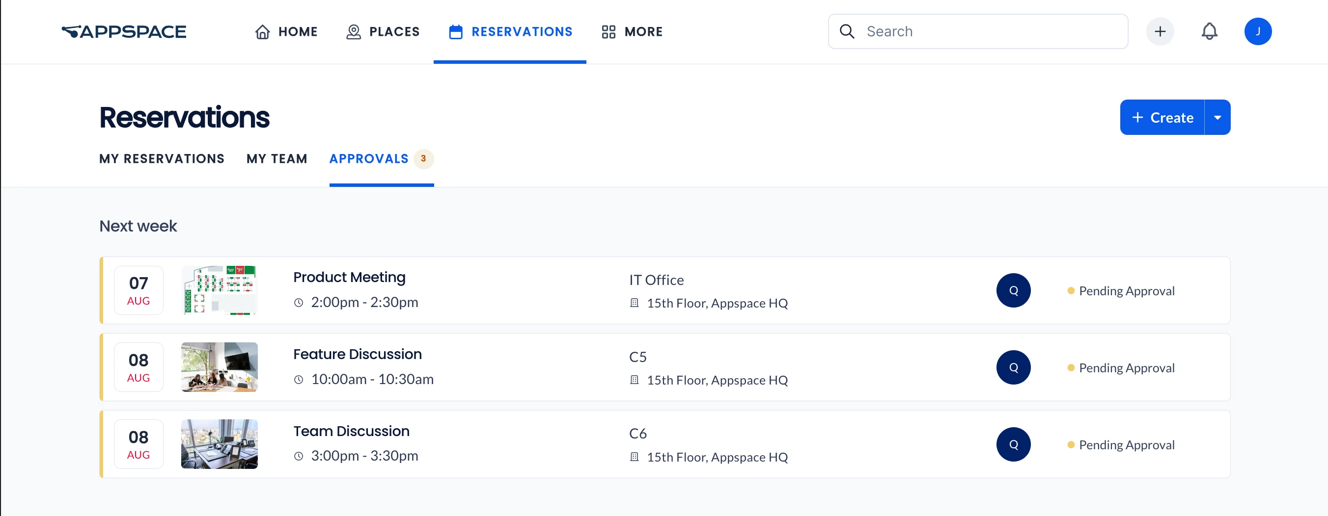 Approvers will be able to review reservation requests in the Approvers tab under the Reservations section of the Employee View. This article displays steps on how to view and approve these pending reservations or deny them in the Appspace Employee View on web browsers.