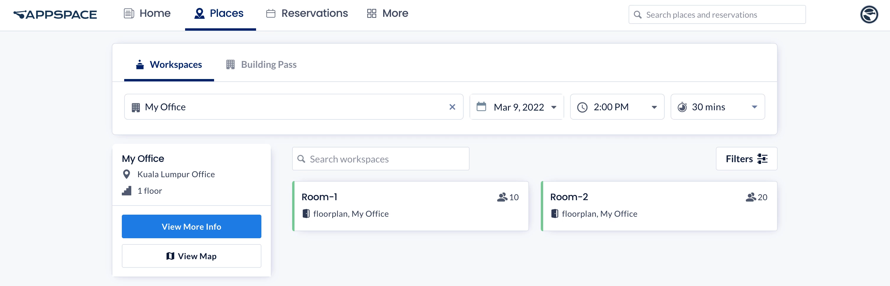 - Employees may now reserve a building pass via the Employee View on a browser, or the Appspace Mobile App.