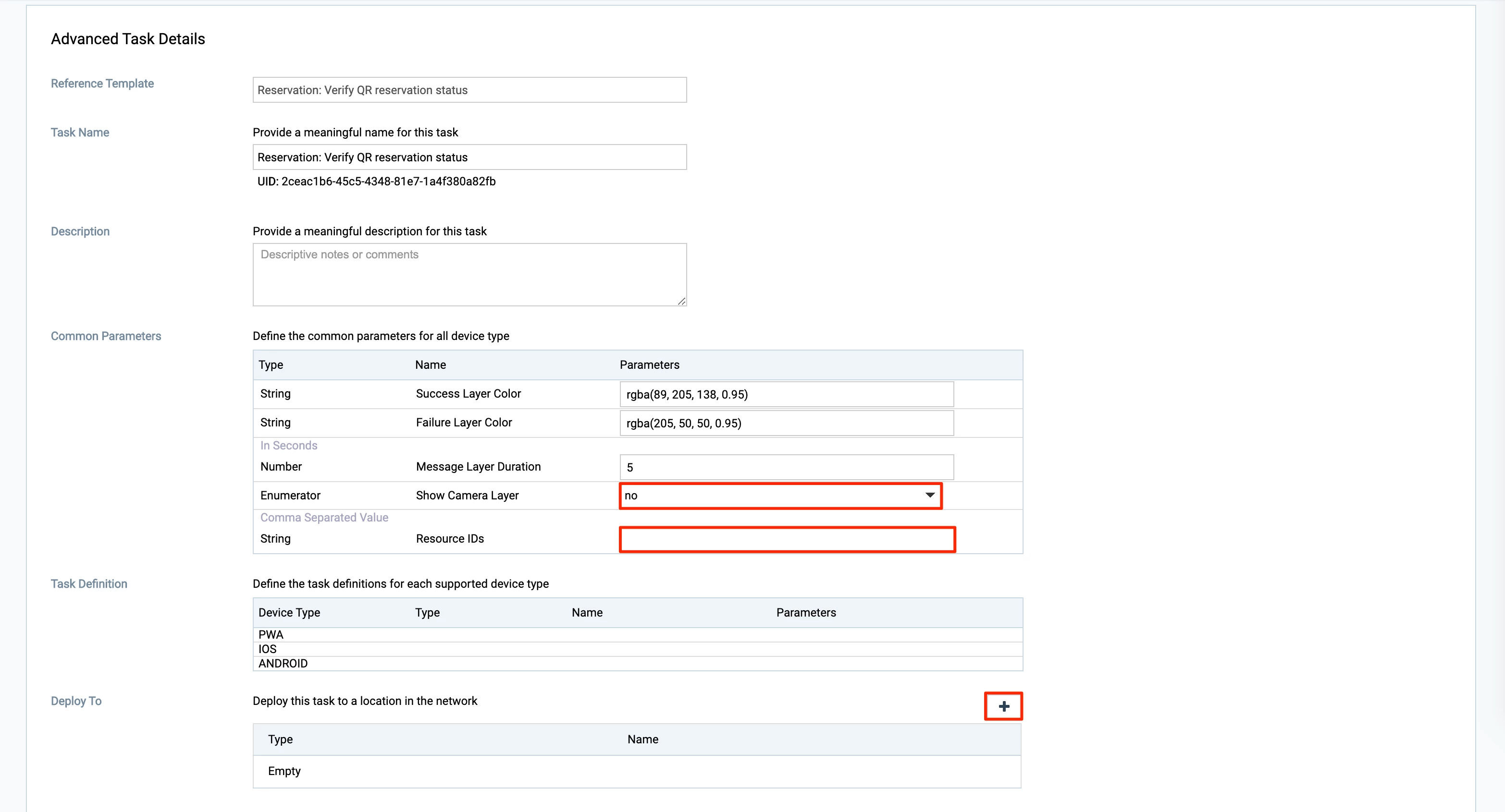 - Select the Reservation: Verify QR reservation status device task, and click Select.