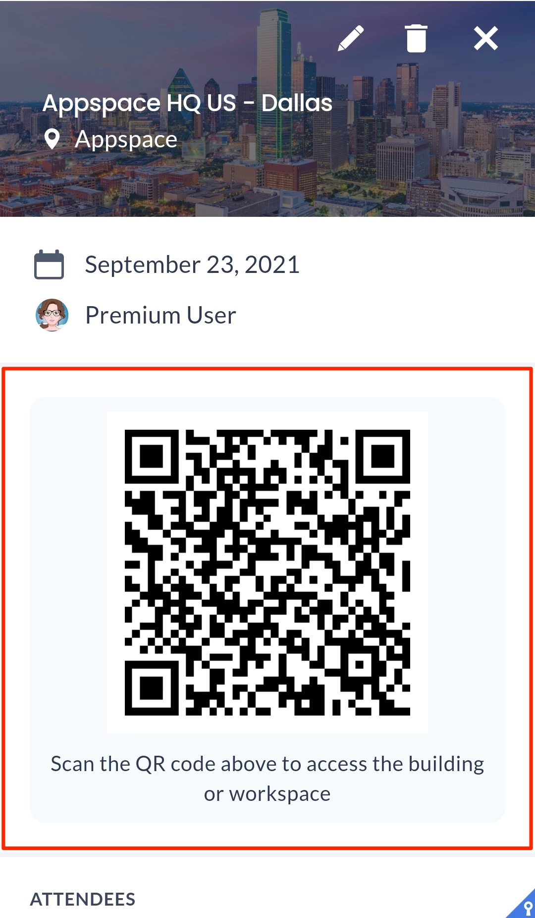 - Select the desired building pass to display the QR code to be scanned. Click to enlarge the QR code for scanning if needed.