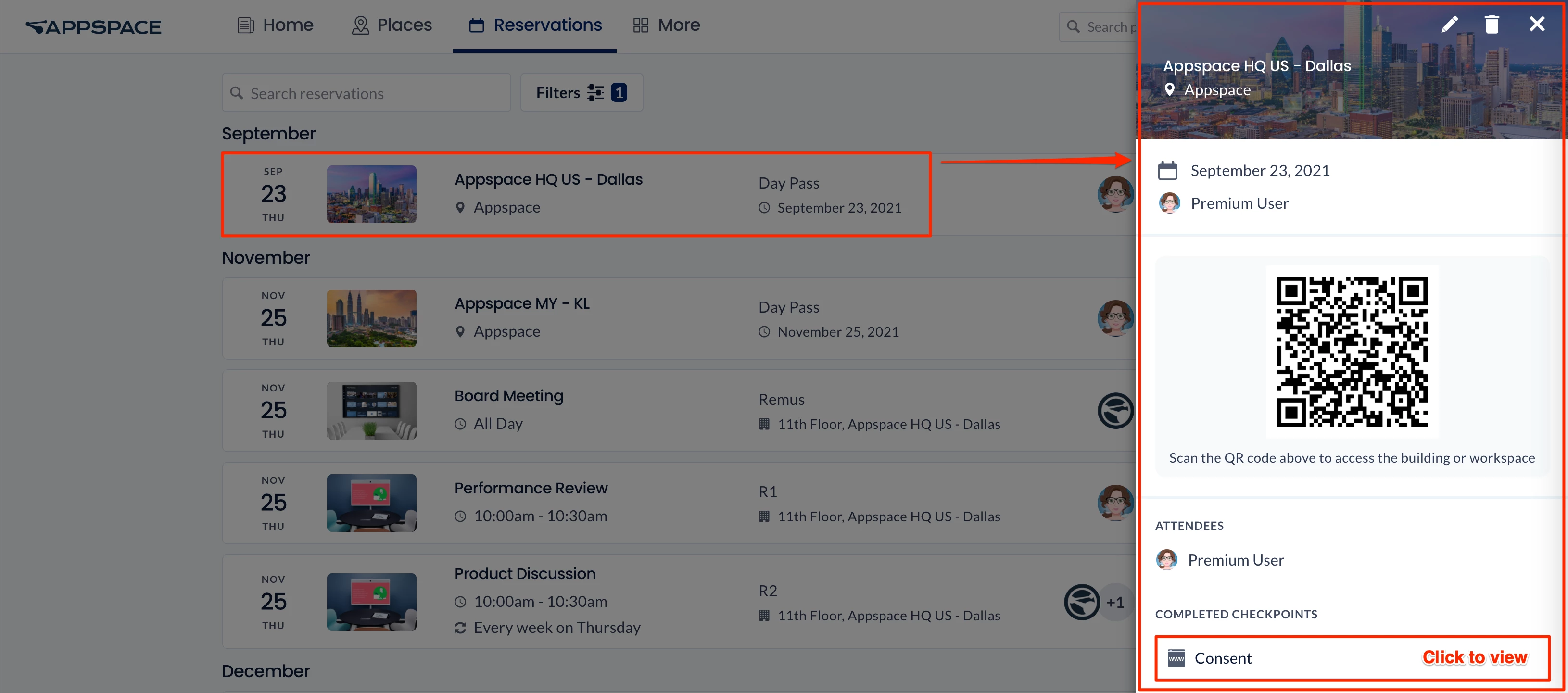 - Once the building pass has been successfully reserved, it would be listed and available in the Reservations section.