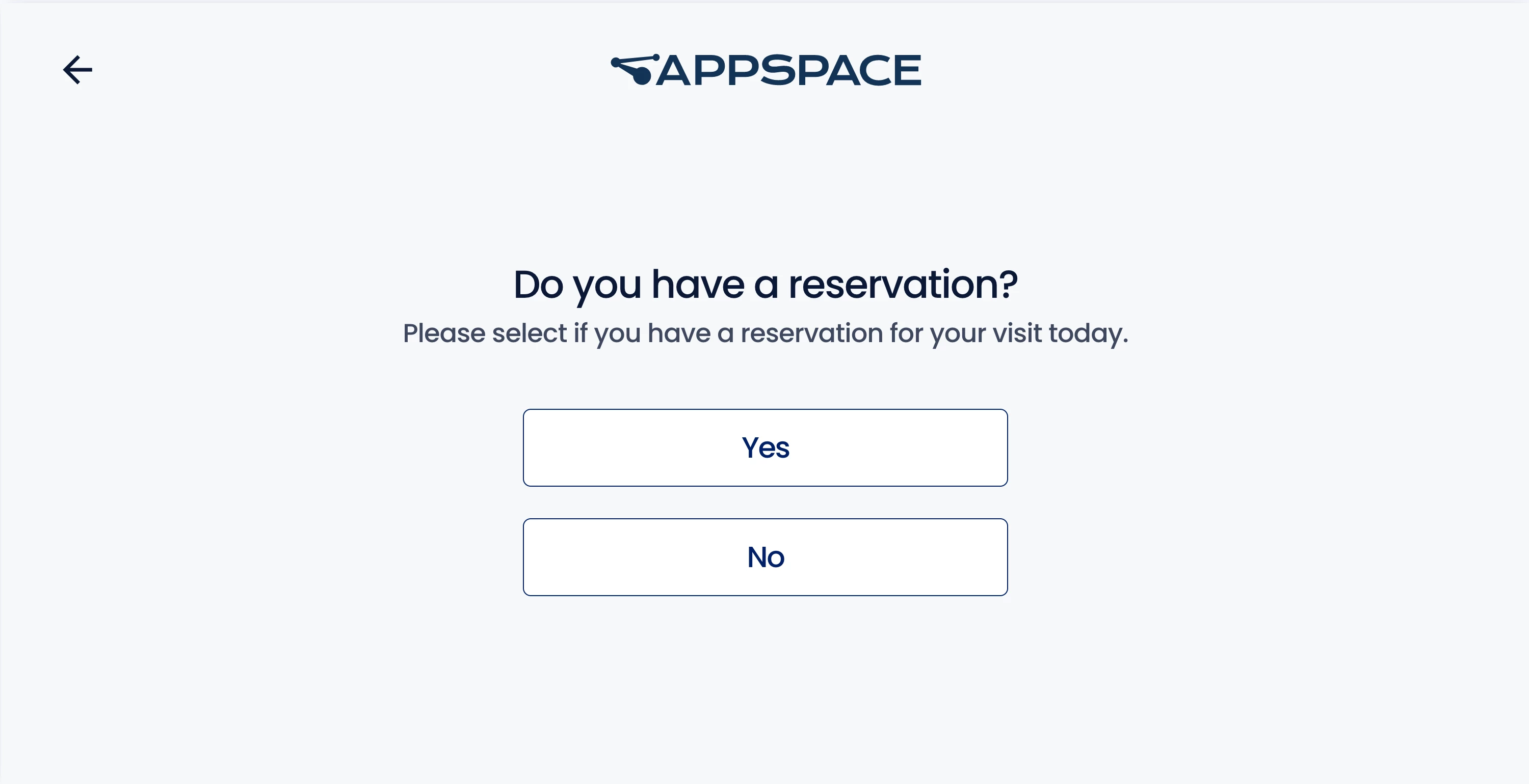 - On the next screen, confirm that you have a visitor invitation or reservation by clicking Yes. If you do not have a visitor invitation, click No and proceed to follow the instructions in the Visitor Drop-Ins section below.