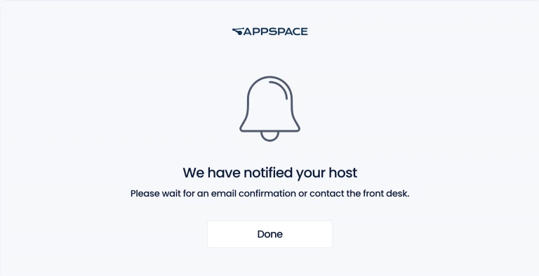 - The host is notified upon completion of the check-in process, allowing them to come to greet the visitors.