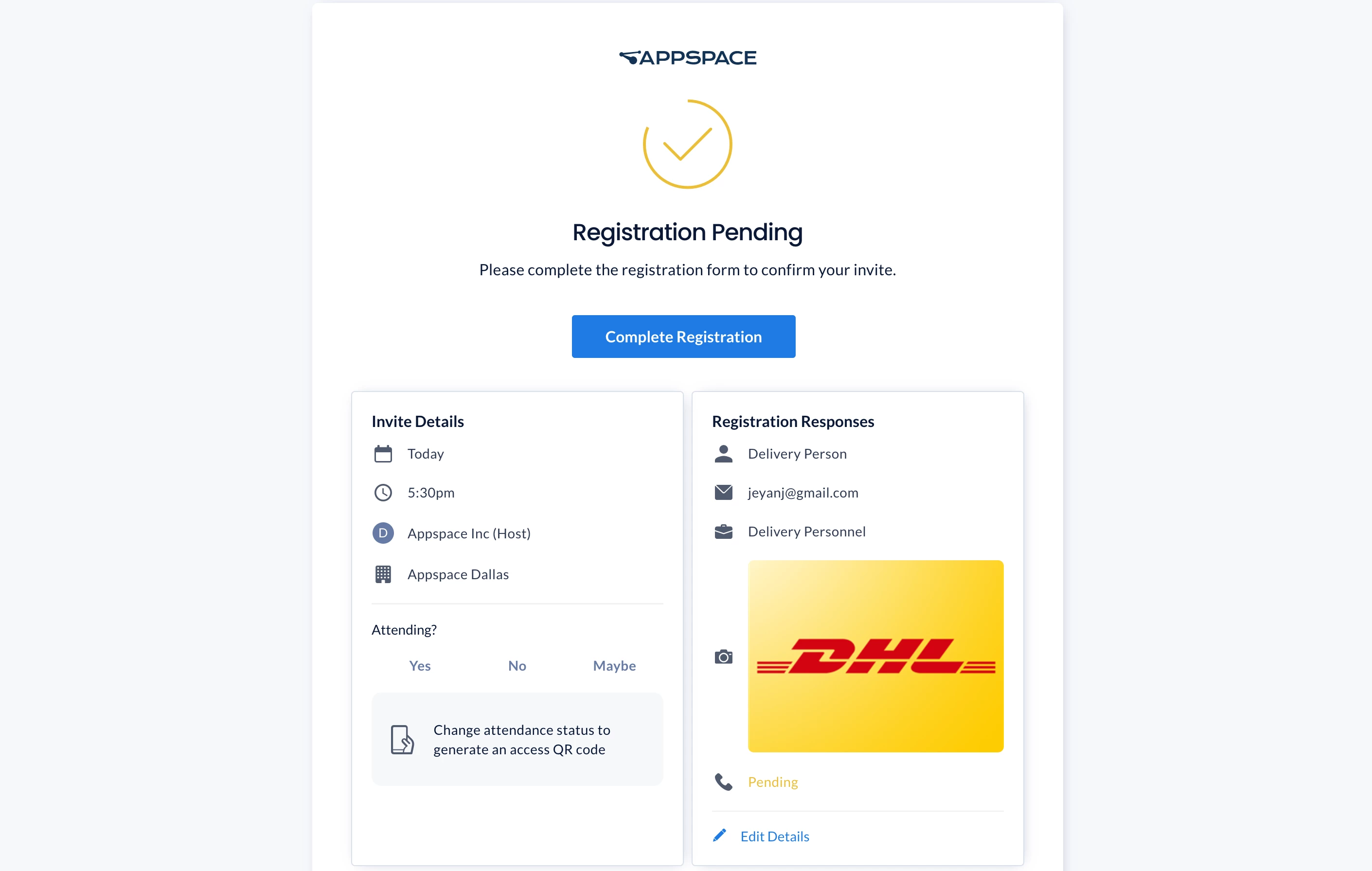 - Once the registration process has been completed, the event host will be notified that they have a visitor on the premise and they need to confirm or deny your drop-in request.