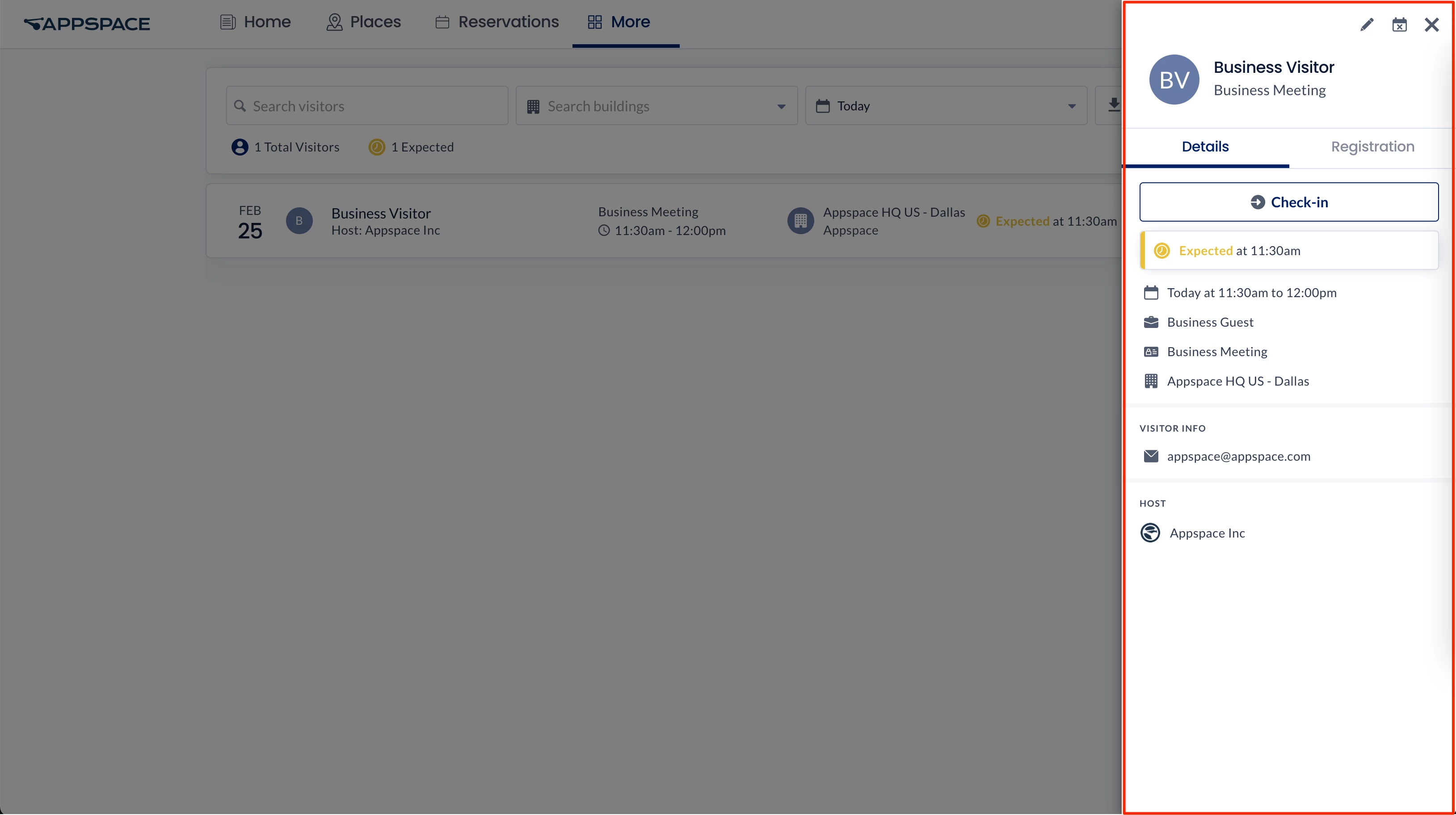 - Click the desired visitor invitation of the visitor, and click the Check-in button.