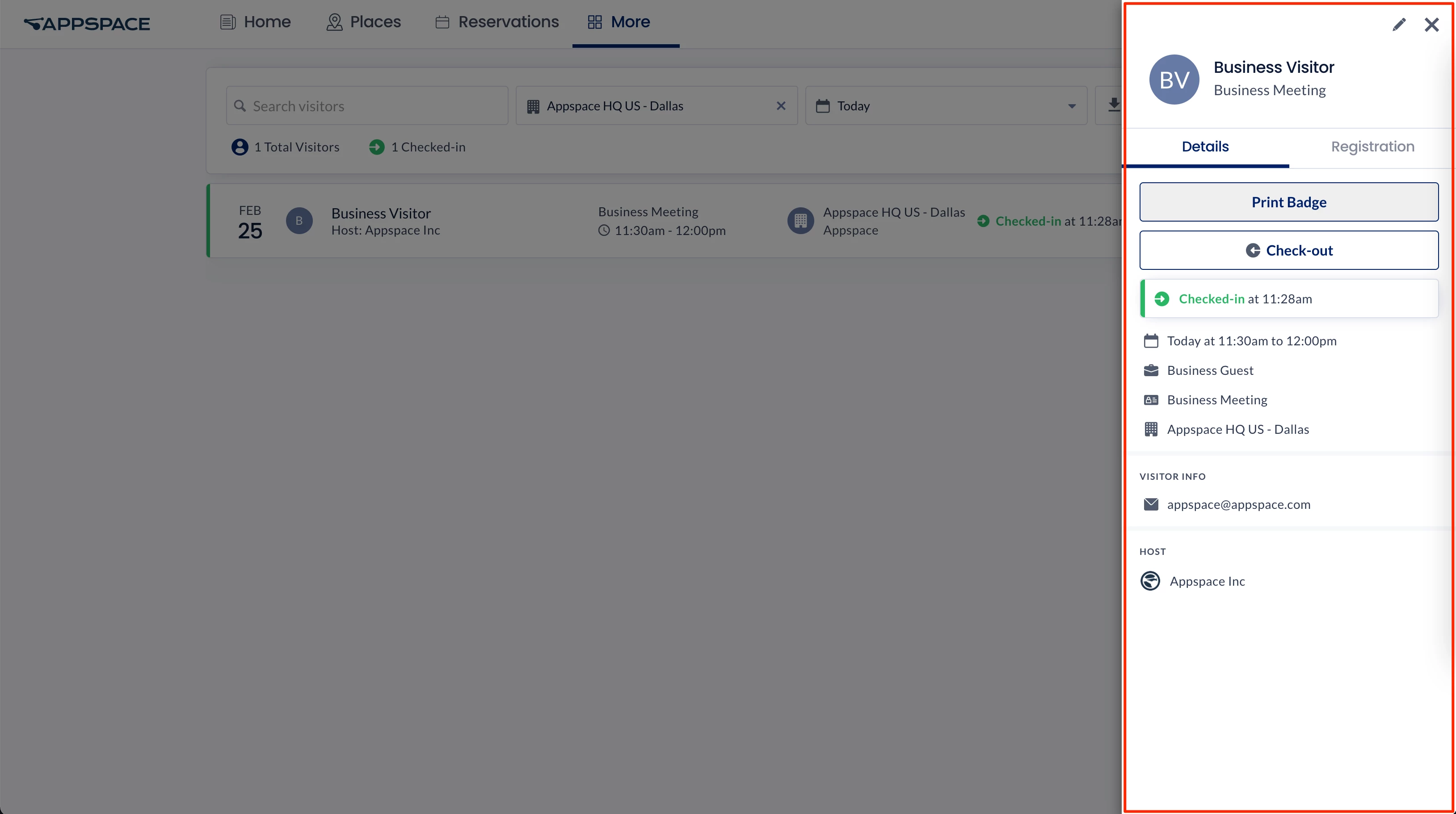 Follow the instructions below to print badges for visitors via the Appspace Employee Experience: