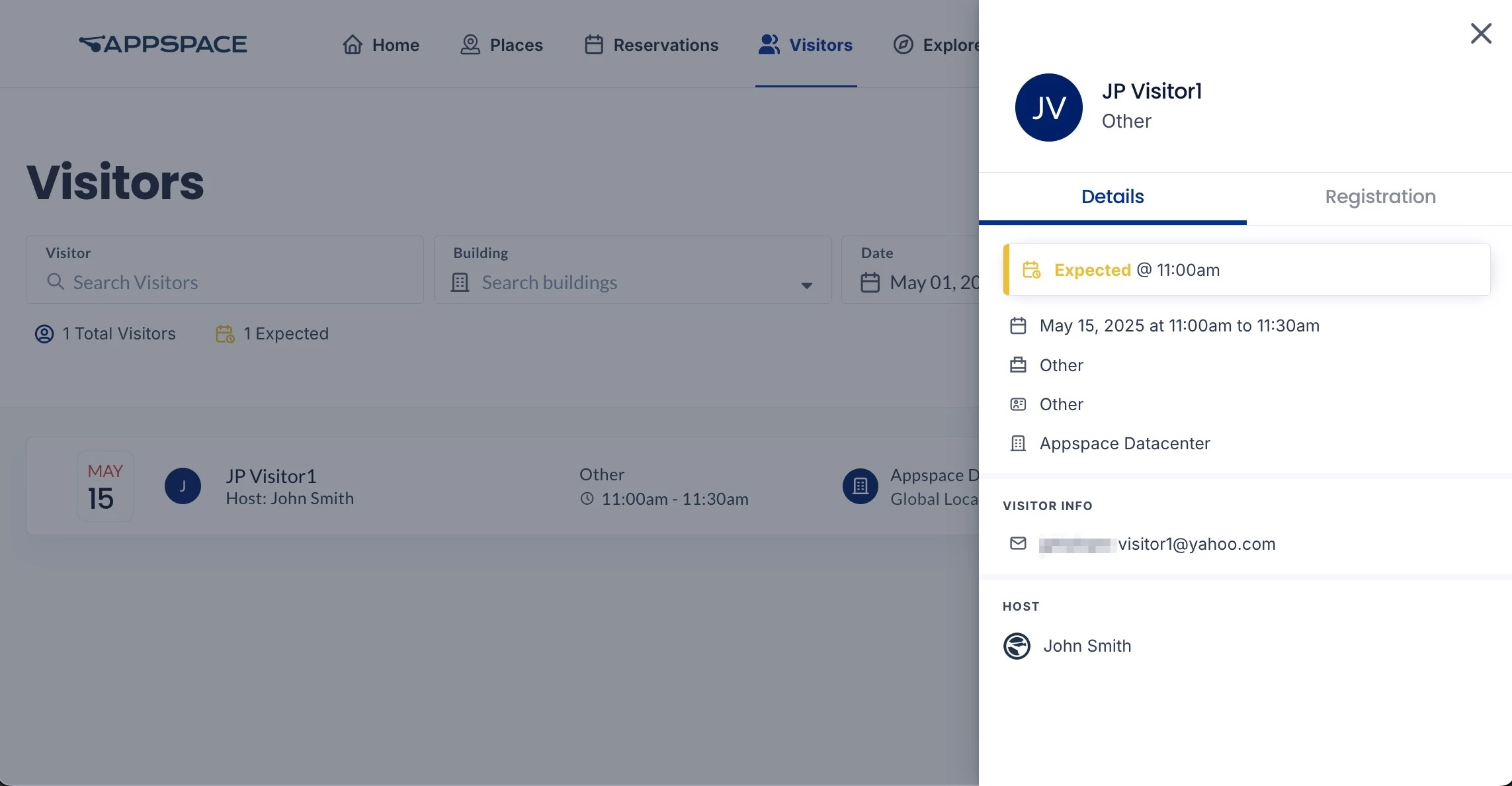Hosts can invite visitors to a configured resource in a company such as a room, space, or building and manage visitor registrations that are either done manually, through email, or an enterprise messaging app. They can be employees who initiate any visitor management activity by inviting an external user to an event or meeting via the Appspace Employee Experience portal. Once an employee sends an invitation, they automatically become the meeting/event host.