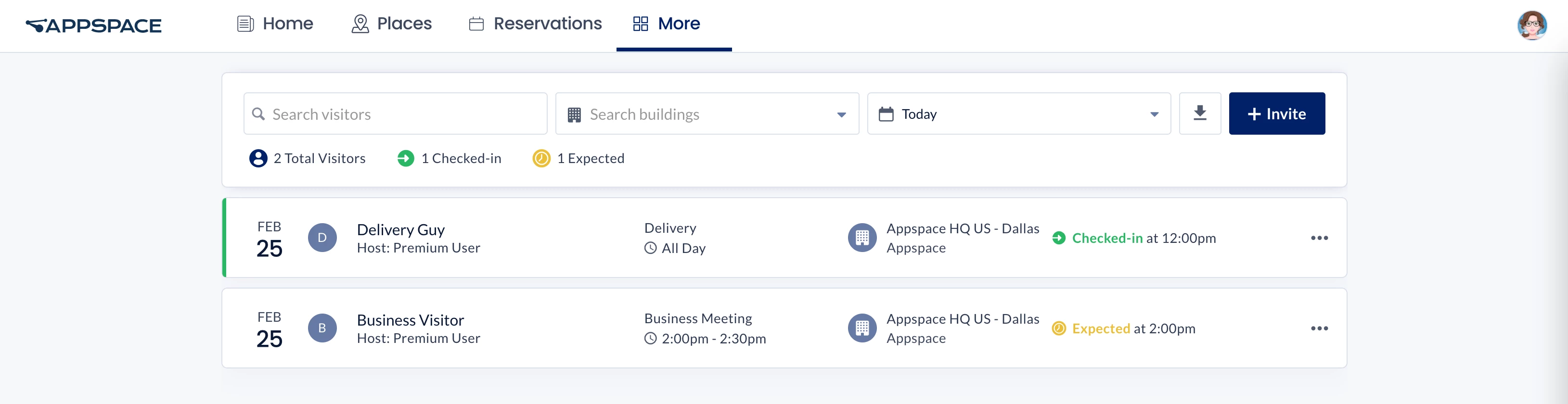 - Hosts and Facilitators will use the Appspace Employee Experience to invite visitors and to review and check-in visitors. The Employee Experience requires Premium user licenses.