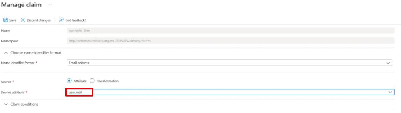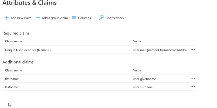 Verify that the configured claims align with the required format. Complete claims should appear like this: