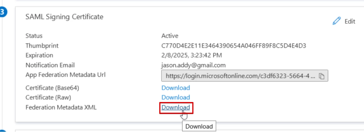 Download the Federation Metadata XML file from Section 3: SAML Signing Certificate. Provide this metadata file to Appspace for your configuration.