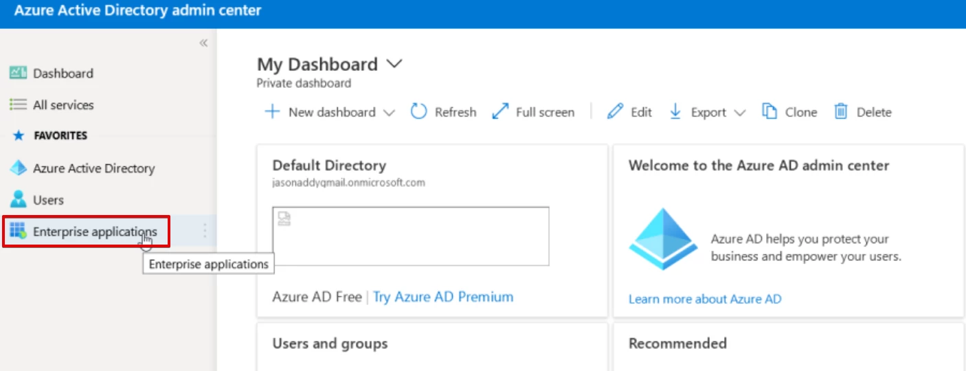 - Access Azure Active Directory: Log in to the Azure portal and navigate to the Enterprise applications section within Azure Active Directory.