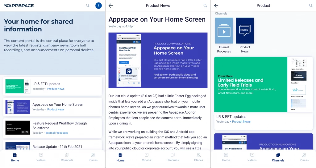 - As an employee and regular Appspace user, you will directly land in the Employee View and can start using it immediately.