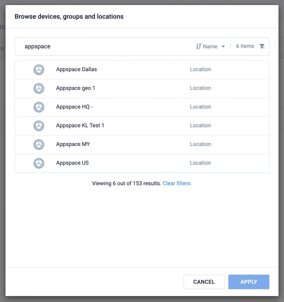 - If your IT/Location Admin has a naming convention to easily identify devices that are used for digital signage, this will make it easier for you to look for those devices when publishing.