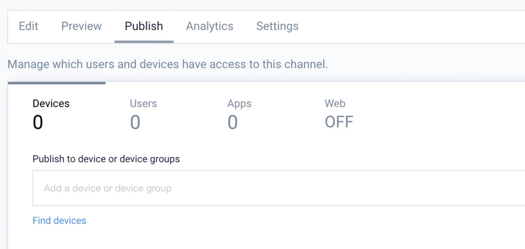 - As a Publisher, you choose which devices and users you want to publish channels to.