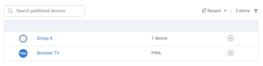 If you change your mind about any of the devices or device groups in your channel’s device publishing list, you can simply click on the X button to delete it from the list.