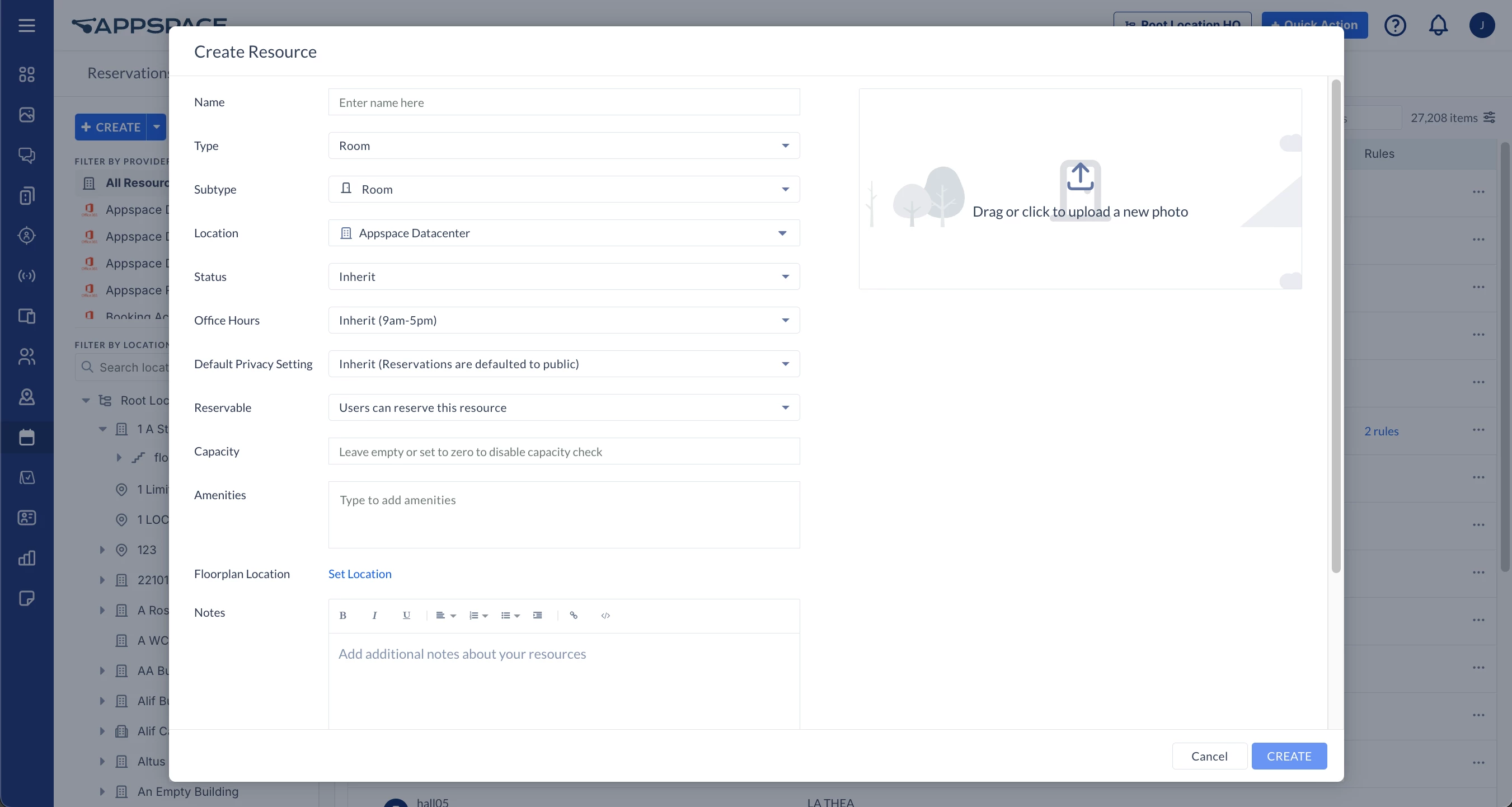 - Location – Select the building, campus, or floor, where the resource is located from the location tree.