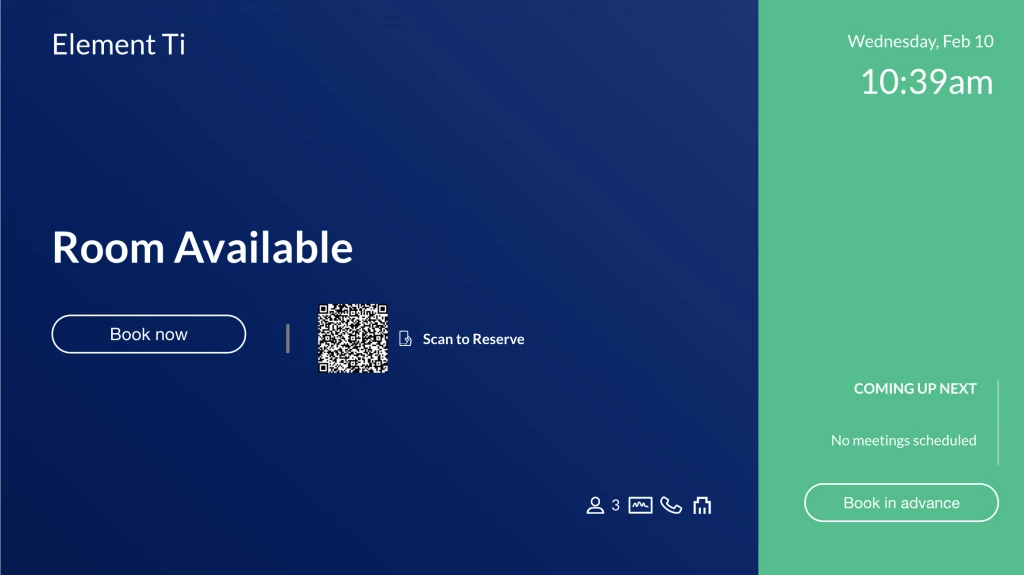 Employees can reserve workspace resources in advance using the Employee View, or they can instantly book a room on location using the room check-in endpoints.