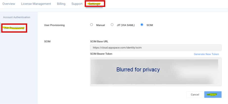 - Select Users > Settings > User Provisioning.