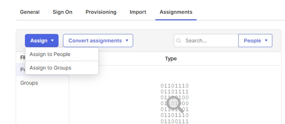 Select the Assignments tab and add the users or groups that should be automatically provisioned in Appspace. Only assigned users will be synced.